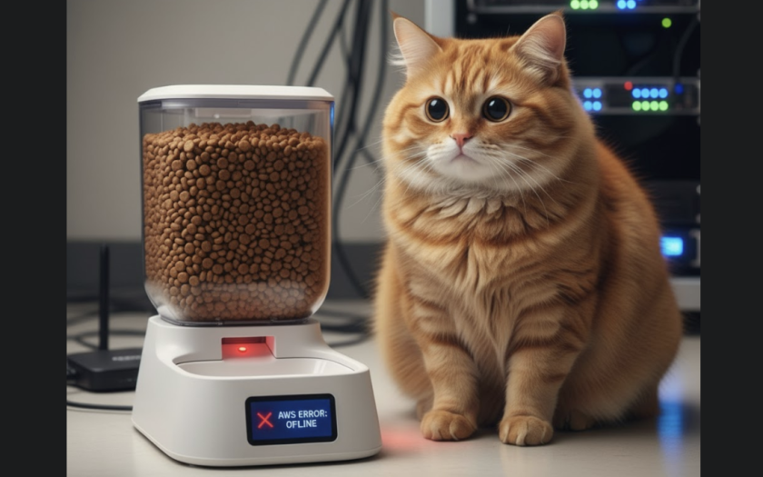 前兩天鬧得沸沸揚揚的 AWS 大當機,不只弄掛了多少電商網站、串流服務,我同事收到通知說,因爲家中貓咪的自動餵食程式是要連網的,因爲AWS當機連不上,所以就沒有 …